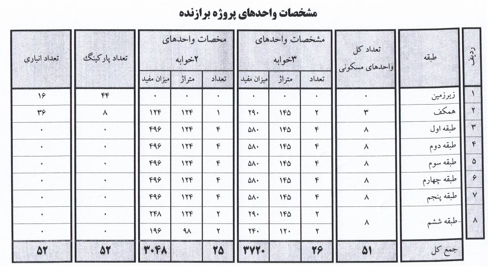 با توجه به تایید نهایی نقشه پروژه خیابان برازنده، جدول متراژ واحدها به پیوست است. {تاریخ اطلاعیه 24 شهریور 1403}